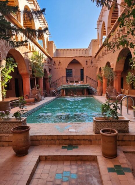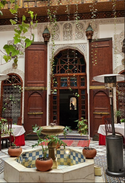 今回の旅では8カ所の宿に泊まりました。いずれも定評のある宿を手配していただき、それぞれ趣が異なる点も良かったです。日本の畳文化と違い、土足なので若干不便に感じることがあるかもしれませんが、それを補っても余りあるリアドのステキな中庭や噴水、屋上テラスや室内の調度品・インテリアを楽しみました。