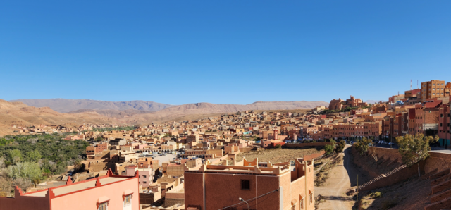 今回の旅行で強く印象に残った景色の一つは、モロッコ南部に広がる赤土の街です。鉄分を含む赤土の土壌で、昔から干し草を混ぜたレンガで家や壁を作っていたそうです。アイトベンハドゥが有名ですが、カスバ街道沿いには、赤褐色で統一された街があちこちにあり、デーツやオリーブ畑の緑とのコントラストが美しい風景が続いていました。