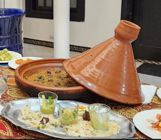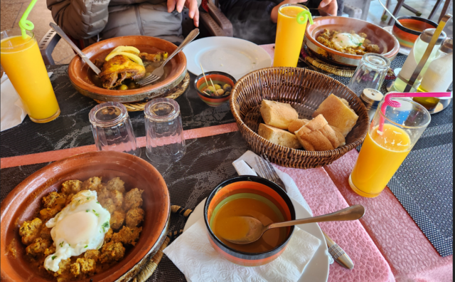 料理はタジン鍋が中心でしたが、想像以上に野菜が多くてヘルシーでした。ただモロッコの食事は全体的に量が多かったです。