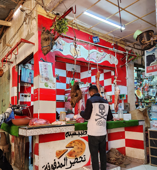 飲み物はオレンジ100%ジュースがとっても美味しく、レストランでは毎回注文しました。太陽を浴びたモロッコのオレンジはとても甘く濃いです。そして(プルーンに似た)デーツ。日本では馴染みがありませんが、栄養価が非常に高く、モロッコの人は誰でもデーツを食べるそうです。自然の甘味がちょうどよく、リサーニの市場で何箱も買ってしまいました。市場は見て回るだけでも楽しかったです。肉屋の店頭にラクダの頭がぶら下がっててビックリ。ラクダの肉はどんな味なんでしょう・・。