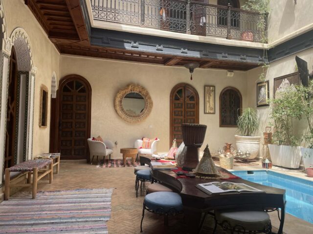 このため、「サハラ砂漠の風」では、車を降りてからのアクセスとサービス(親切・清潔・素敵な内装など)の両面でマラケシュでのご宿泊先リヤドを選定して、ツアーでは使用しています。