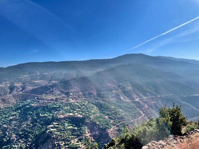 オート・アトラス越えでは雄大な景色が広がり、道は標高2,260mの最高地点を超え、マラケシュまで山道を下ります。